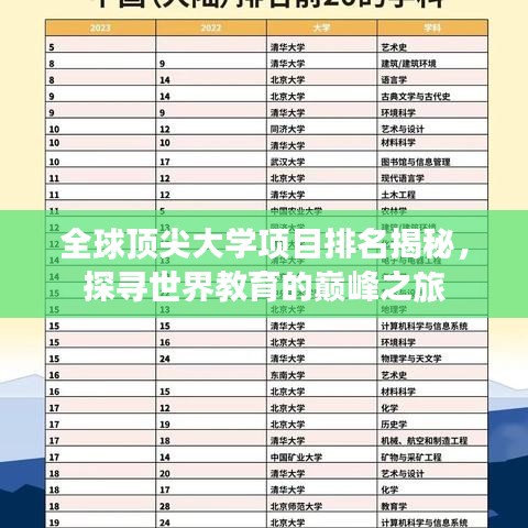 随着全球化的步伐加快,教育领域的竞争也日益激烈,世界顶尖大学项目排名成为了众多学子关注的焦点,它不仅反映了全球教育的现状,更是未来教育发展的风向标,本文将为您深度解析世界顶尖大学项目排名的背后故事,带您领略全球教育的卓越之巅。