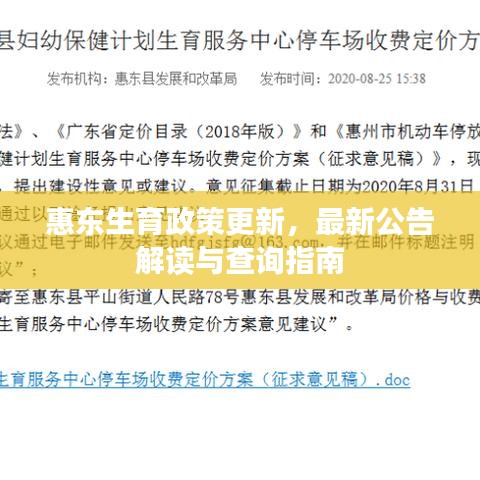 随着社会的不断发展和人口结构的变化,生育政策成为了人们关注的焦点之一,为了更好地满足人民群众的需求,促进人口长期均衡发展,惠东县根据国家和省市的生育政策,结合本地实际情况,制定了一系列的生育政策,本文将为您详细介绍惠东生育政策的最新公告查询。